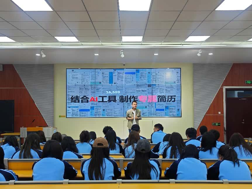 经济管理学院2024级300余名学生参与了此次培训活动。讲座主要分为就业意识引导与促动方法、结合AI工具制作专属简历、职场礼仪赋能职业成长等三个模块,讲座内容丰富,互动性强,专家们通过实际案例分享和现场答疑等方式,帮助学生更好地理解就业创业相关知识与技能。同学们积极参与,现场气氛热烈,收获颇丰。