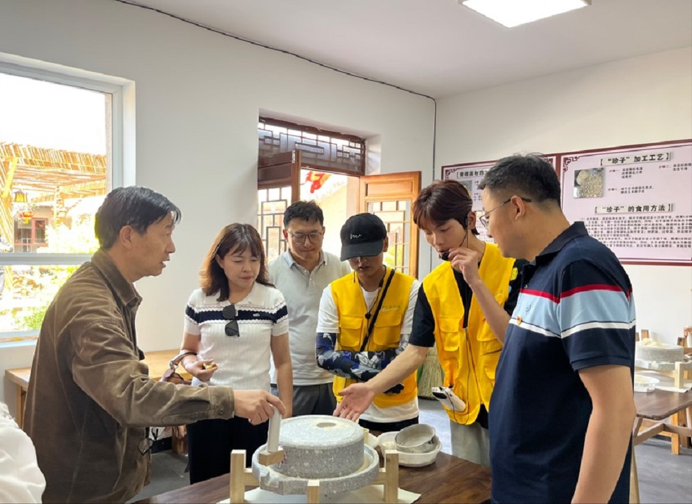 座谈会结束后,全体人员一同参观了农耕文化体验园。在参观过程中,研学旅行管理与服务专业的研学导师实习生,为老师们详细介绍园内的老物件、蚕宝宝养殖以及面粉制作等内容。大家不仅了解到这些老物件背后承载的农耕文化历史,还对蚕宝宝从孵化到结茧的过程产生了浓厚兴趣。同时,学生带领老师们亲身体验了石磨磨面,感受传统农耕劳作的艰辛与乐趣,在实践中深刻体会到农耕文化的魅力与价值。