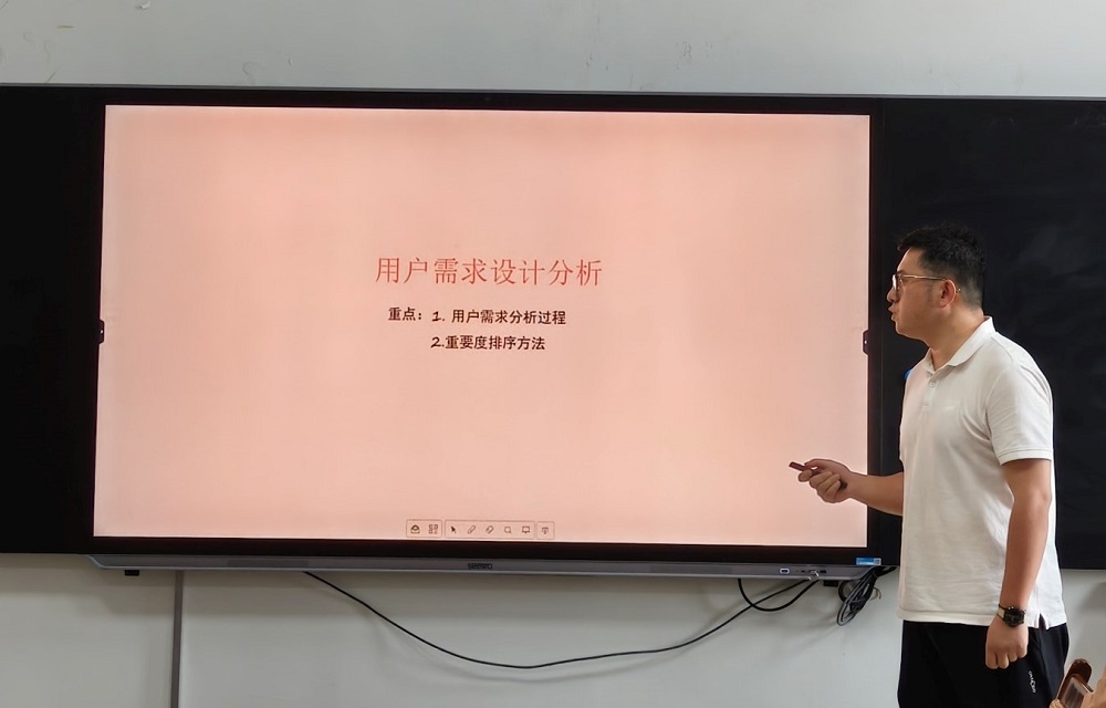 活动第一阶段,魏晋老师结合本科院校工作经历,围绕《用户设计需求分析》展开了本科课程教学交流汇报,展示了本科课程片段教学,为本科课程教学提供了经验借鉴。