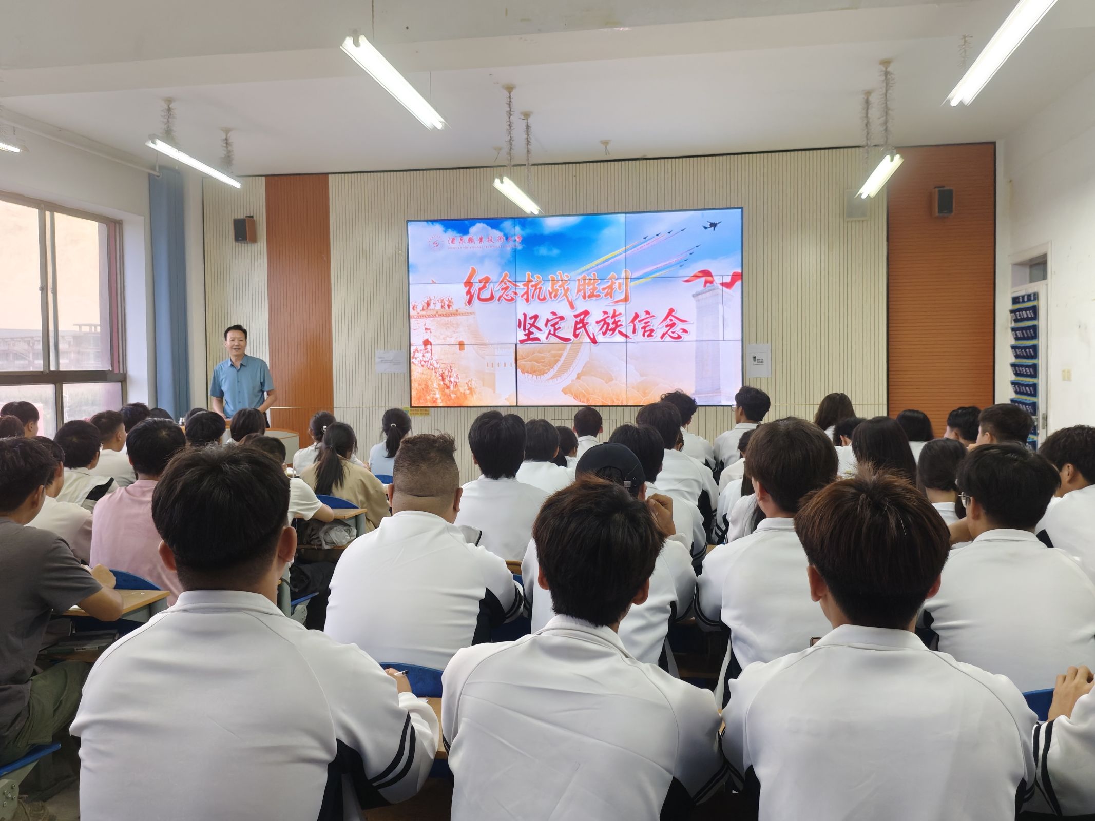 课堂上,学院领导班子借助丰富的历史资料、感人至深的英雄事迹和直观的影像素材,生动再现了中国人民在抗日战争中浴血奋战、不屈不挠的壮阔历史,引领同学们深刻感悟伟大抗战精神所蕴含的爱国情怀、民族气节、英雄气概和必胜信念。勉励同学们既要勿忘昨天的苦难辉煌,又要无愧今天的使命担当,更要不负明天的伟大梦想,以史为鉴、开创未来,踔厉奋发、不负年华,传承和弘扬伟大抗战精神,为以中国式现代化全面推进强国建设、民族复兴伟业贡献青春力量。