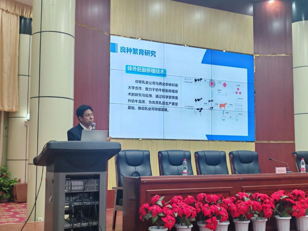 郎昌兵场长结合祁牧乳业的产业发展实践,围绕“祁牧乳业公司概况与发展历程”“国内外奶牛养殖产业现状与趋势”“现代化数智牧场的建设与管理实践”“高产奶牛胚胎移植关键技术突破与应用”以及“乳制品新产品研发与市场导向”等五个方面展开论述。整场报告数据详实、案例生动,既具有宏观的产业视野,又有微观的技术解析。