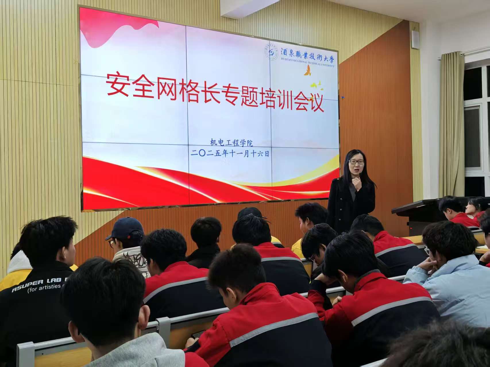 为进一步压实校园安全管理责任,健全“学院-班级-宿舍”三级安全防控体系,充分发挥班长、团支书、宿舍长等基层学生骨干的安全网格员作用,11月16日晚,机电工程学院在格物楼208教室召开学生安全网格员专题培训会,培训由李娟老师主讲,2024、2025级班长、团支书、宿舍长共400余人参加了培训会。