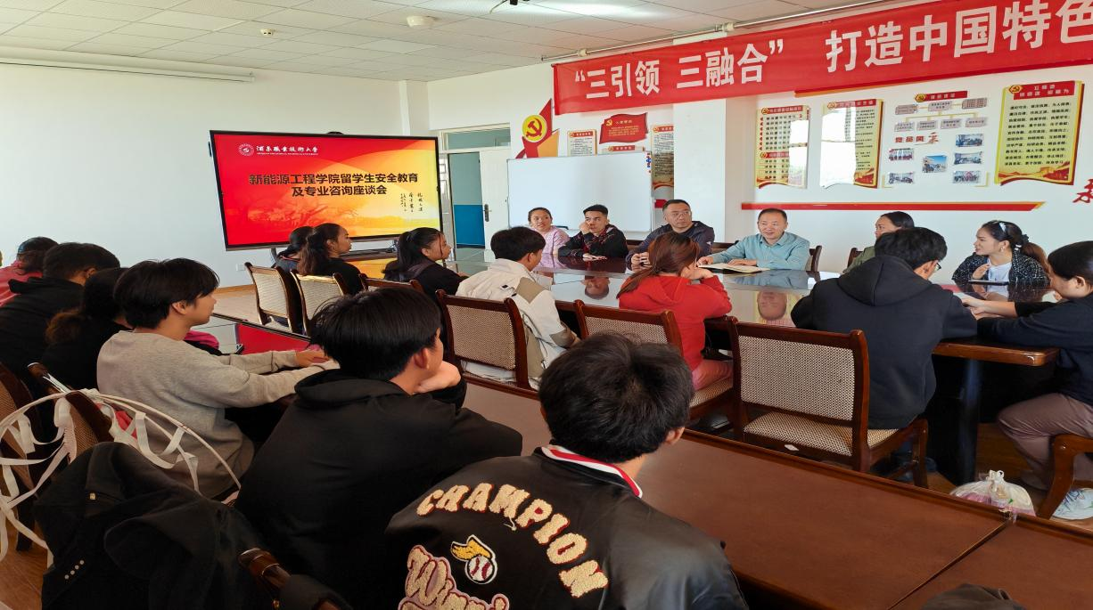 2025年11月25日,酒泉职业技术大学新能源工程学院举办“留学生安全教育及专业咨询座谈会”。新能源工程学院教师与留学生齐聚一堂,聚焦安全事项、专业发展、学习规划等议题深入交流。