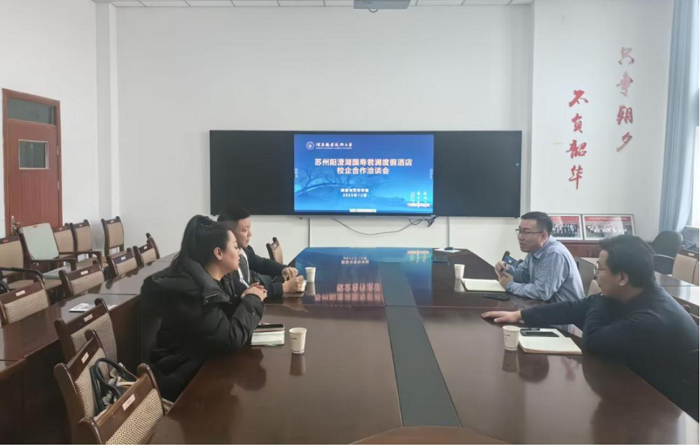 12月23日,苏州阳澄湖国寿君澜度假酒店总经理陈总一行到访旅游与烹饪学院,围绕校企合作模式创新、人才联合培养及毕业生就业输送等议题开展深度洽谈,并举办专场招聘会。招生就业处副处长张辉、学院副院长董轩出席活动,与企业代表共商合作发展、共育文旅烹饪人才。