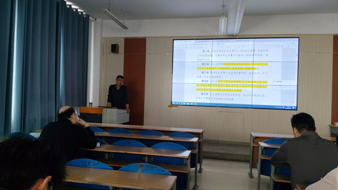 2月26日下午,副院长马宏主持召开科研管理制度专题学习会。全体教师集中学习了《酒泉职业技术学院科技成果认定办法》《科研项目管理办法》《科研项目经费管理办法》及《高等学校预防与处理学术不端行为办法》等文件。他对重点条款进行逐条解读,强调规矩意识与底线思维,要求教师在项目申报、经费使用和学术研究中恪守规范,同时鼓励结合企业技术难题开展应用研究,以科研成果反哺教学,服务区域产业升级。