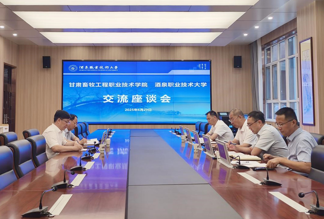 2025年6月29日,甘肃畜牧工程职业技术学院党委副书记、副校长田宗祥,教务处处长郭志明一行来我校考察交流,重点就“五金”建设、资产管理等工作开展座谈交流。学校党委副书记、校长许军出席。教务处、创新创业学院负责人参加交流座谈。