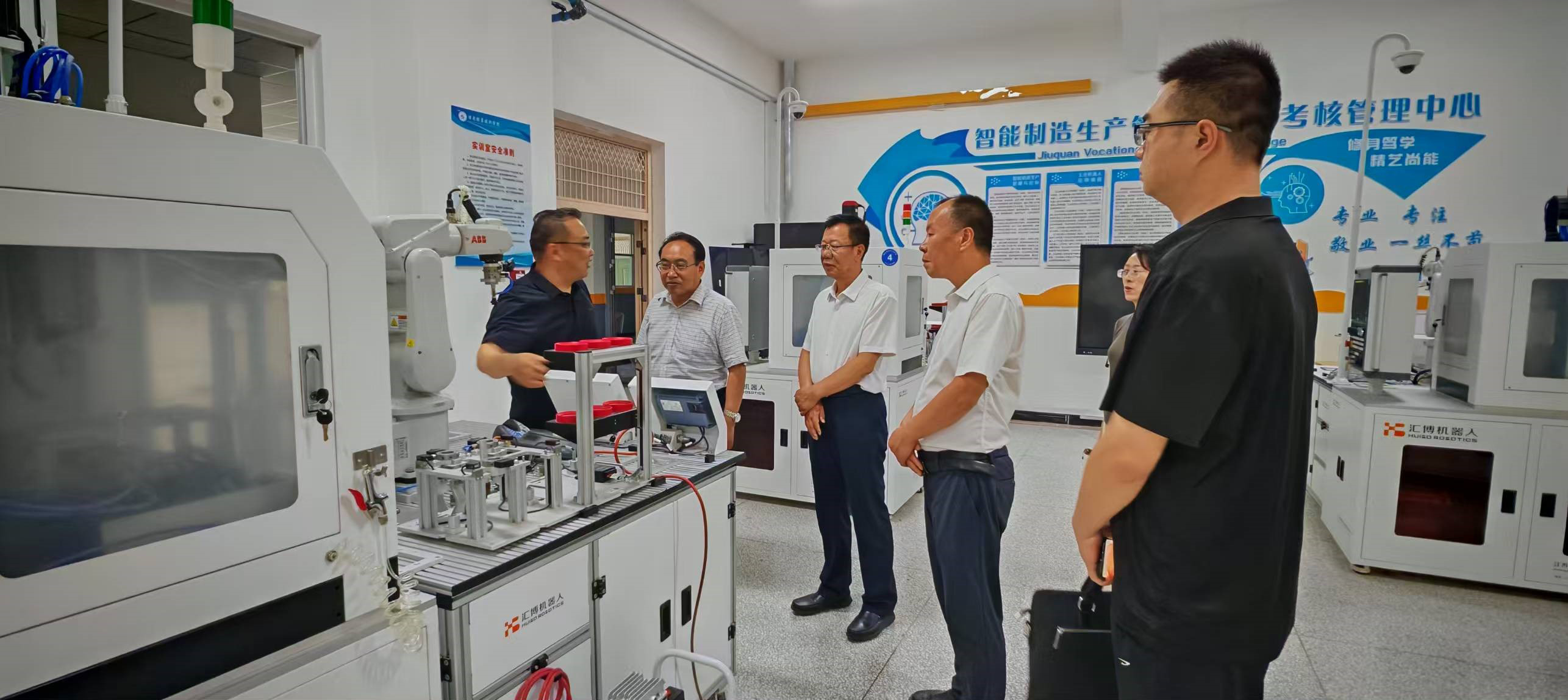 考察团实地查看了智能制造中心、工科实训中心等教学场地,详细了解了酒泉市职业教育产教融合示范区规划布局、建设方案、项目推进、学校实验实训条件建设运行情况。