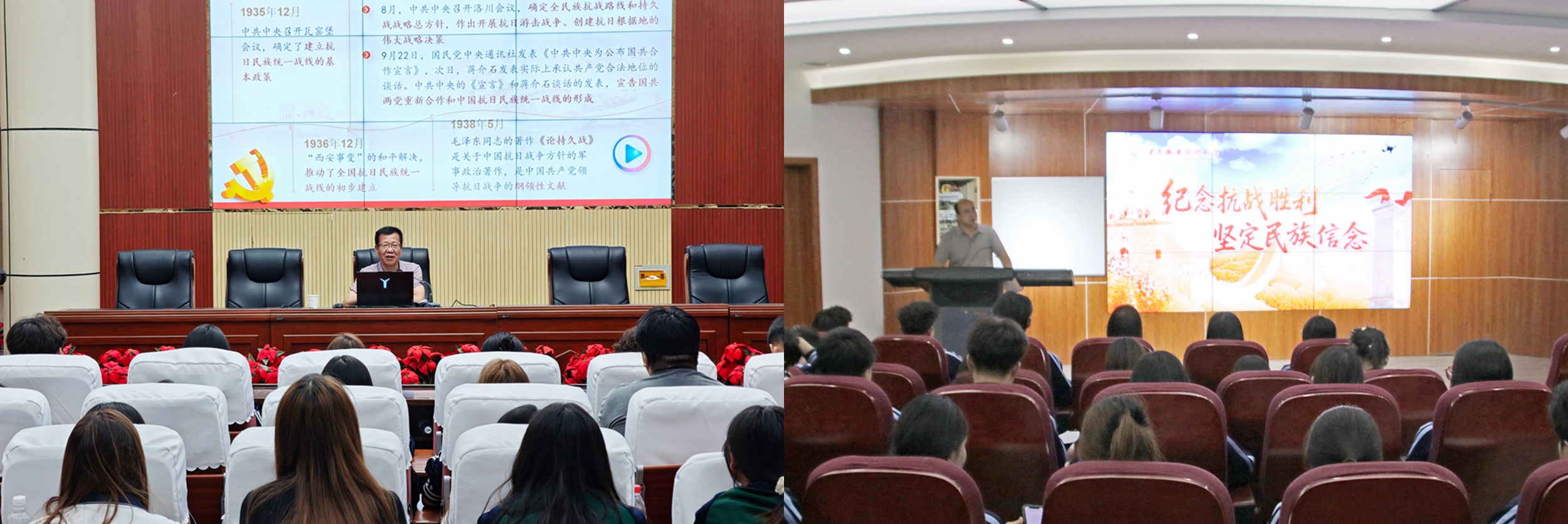 党委书记易志军以“纪念抗战胜利 坚定民族信念”为主题,从“铭记历史、正义必胜”“民族壮举、浓墨重彩”“精神丰碑、永不磨灭”“珍爱和平、开创未来”四个方面展开授课。他以厚重的历史视野开篇,结合大量珍贵的历史资料与鲜活案例,生动再现了中国人民在抗日战争中浴血奋战的壮阔历程。他从“九一八事变”后的顽强抗争,到“七七事变”后的全民族觉醒,再到抗战胜利时的举国欢腾,系统梳理了中国人民抗日战争的历史脉络,深刻阐释了“正义必胜、和平必胜、人民必胜”的历史真理。同时,他立足新时代发展实际,对比抗战时期与当下中国的综合国力、国际地位变化,让同学们清晰认识到新时代党和国家事业取得的历史性成就,深刻理解中国式现代化建设的重大意义与光明前景。