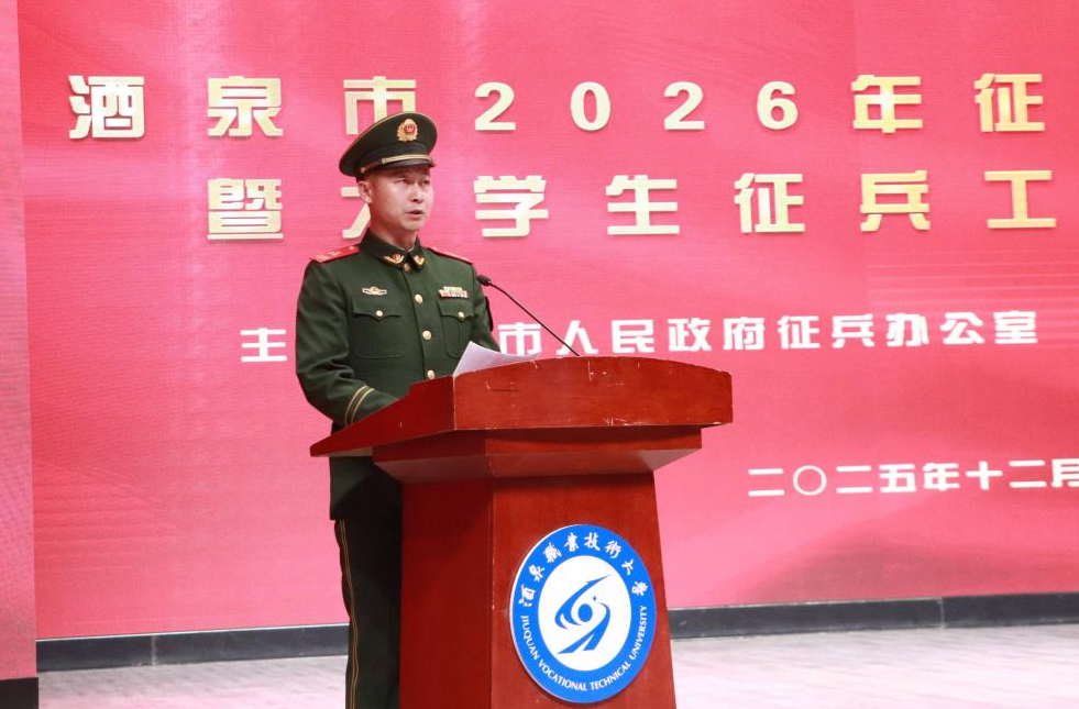2025年12月19日下午,酒泉市2026年征兵宣传进校园暨大学生征兵工作启动仪式在酒泉职业技术大学胡杨活动中心举行。本次活动由酒泉市人民政府征兵办公室主办,酒泉职业技术大学、肃州区人民政府征兵办公室共同承办,旨在深入贯彻习近平强军思想,进一步激发广大青年学子投身国防、报效祖国的热情,为新时代国防和军队现代化建设输送高素质兵员。
